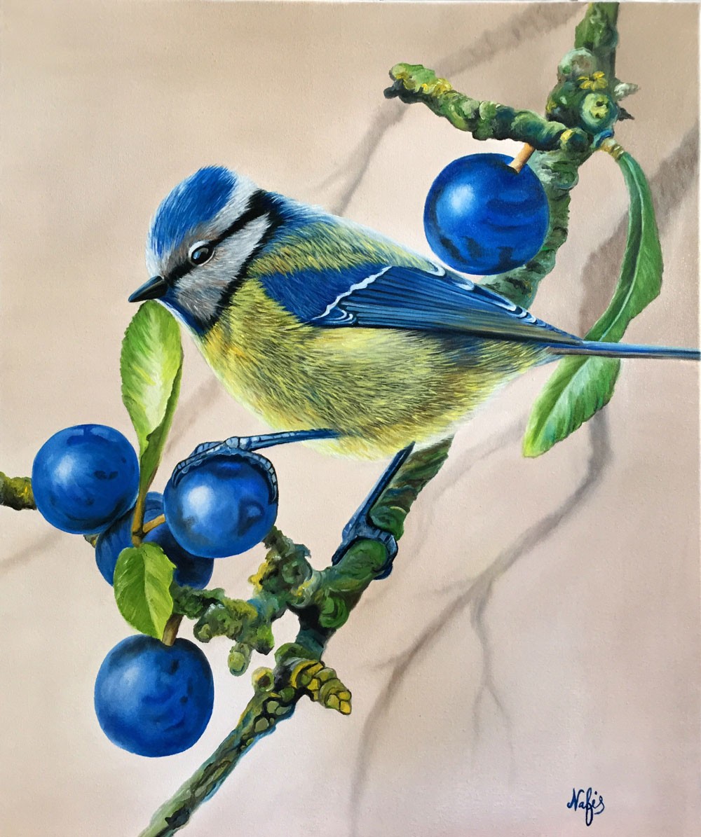 Realismus in der bildenden Kunst ist die Darstellung von Dingen wie im Alltag, ohne zusätzliches Interpretation. Bei einem Federkleid sind zarte und weiche Übergänge ganz wichtig. Zuerst habe ich eine dünne Schicht als Grundfarbe gemalt, dann habe ich die nächsten Schichten mit einem sehr dünnen Pinsel übereinander aufgetragen. So habe ich einen imposanten 3-D Effekt erzielt.