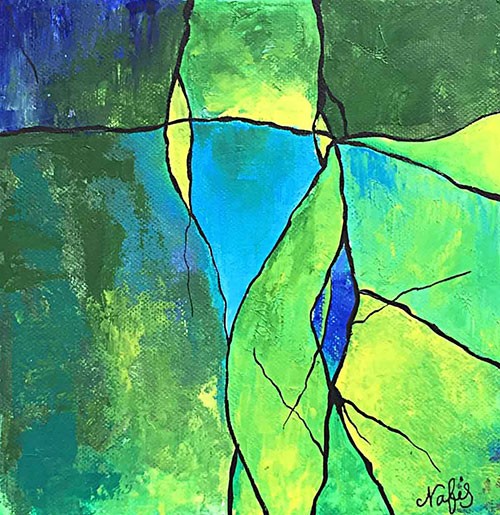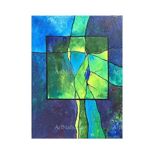 Die in diesem Gemälde verwendeten kalten Farben werden mit einem Spachtel in verschiedenen Schichten gezeichnet.Um diese Textur zu erzeugen, wurden Modellierpasten verwendet.Nach dem Trocknen des gewünschten Strukturs tragen wir die gewünschten Farben in der zweiten und dritten Schicht auf.