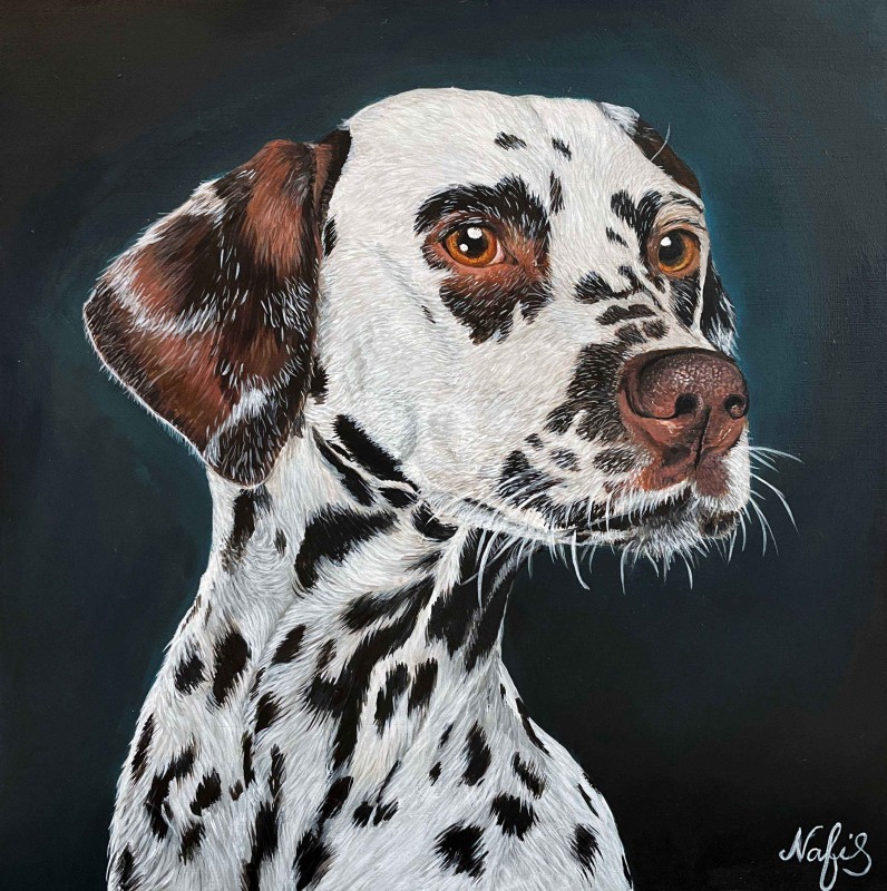 Tier zu malen ist für die meisten Menschen mit vielen starken Emotionen verbunden. Bei einem Tiegerfell sind zarte und weiche Übergänge ganz wichtig. Zuerst habe ich eine dünne Schicht als Grundfarbe gemalt, dann habe ich die nächsten Schichten mit einem sehr dünnen Pinsel übereinander aufgetragen. So habe ich einen imposanten 3-D Effekt erzielt.