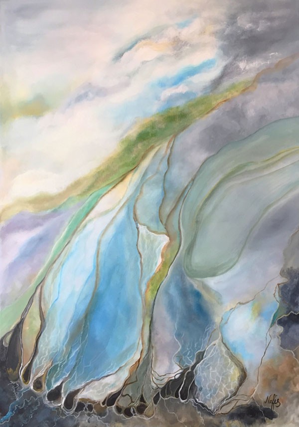 Dies ist ein Originalgemälde mit Acrylfarben auf Leinwand. In den unteren Schichten des Gemäldes wurde verdünnte Acrylfarbe verwendet und dicke Schichten wurden darauf gearbeitet. Verschiedene Farbschichten müssen sorgfältig verwischt werden.
