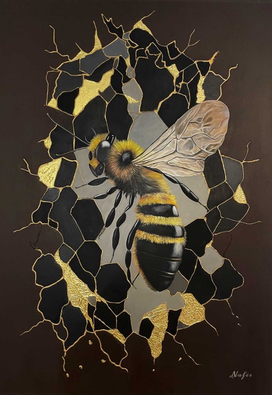 Bei diesem Gemälde habe ich Goldblatt verwendet.
