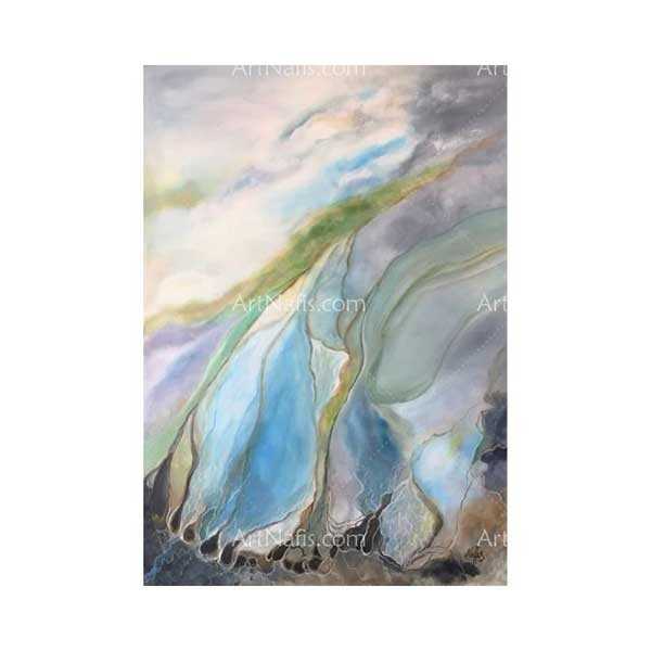 Dies ist ein Originalgemälde mit Acrylfarben auf Leinwand. In den unteren Schichten des Gemäldes wurde verdünnte Acrylfarbe verwendet und dicke Schichten wurden darauf gearbeitet. Verschiedene Farbschichten müssen sorgfältig verwischt werden.