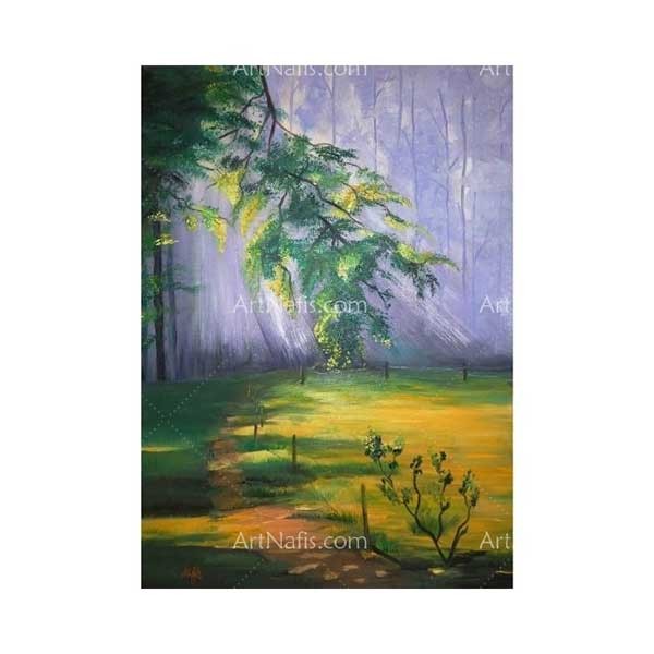 Die Natur wird mit vielen Bäumen in verschiedenen Stilen gemalt. Jede hat sein Gefühl, ob Realismus oder Abstrakt ... Ich habe das mit Öl auf Leinwand gemalt. Die Kalte Farben in Grün-, Gelb- und Blauetönen haben eine schöne Kombination.