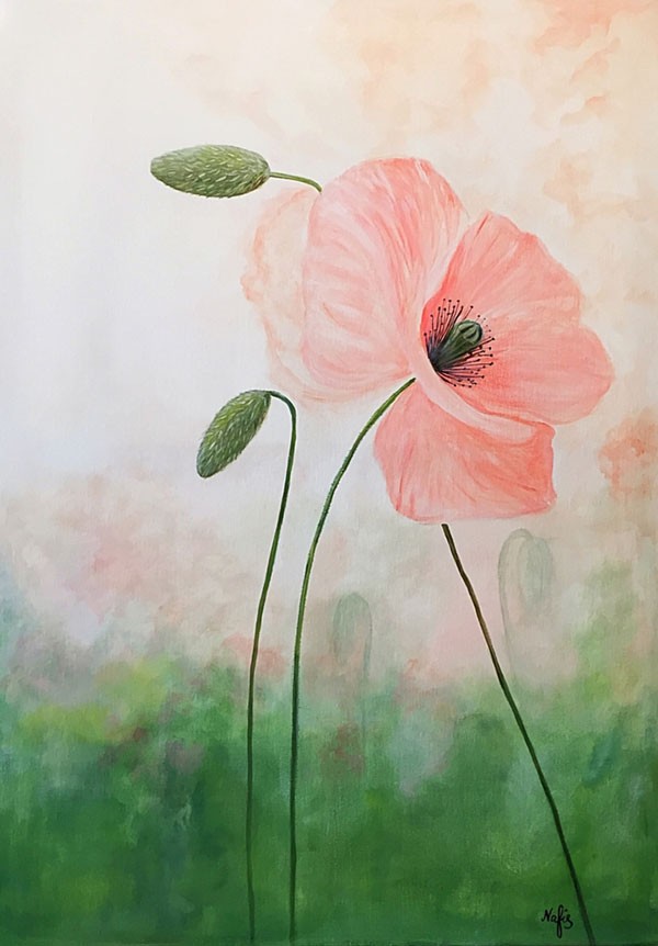 Diese Acrylgemalte Blume ist ein originale Malerei , die in Rosa auf heller Hintergrund gemalt wurde. Rosa Mohn hat verschiedene Farben und gilt es als Symbol vergessener Liebe .