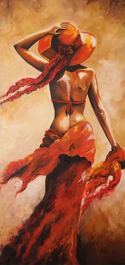 Die meisten in diesem Gemälde verwendeten Farben sind rot. Aufgrund des Themas des Bildes, dem Sommer, habe ich die Wärme des Sommers durch das Spiel mit Farben gezeigt